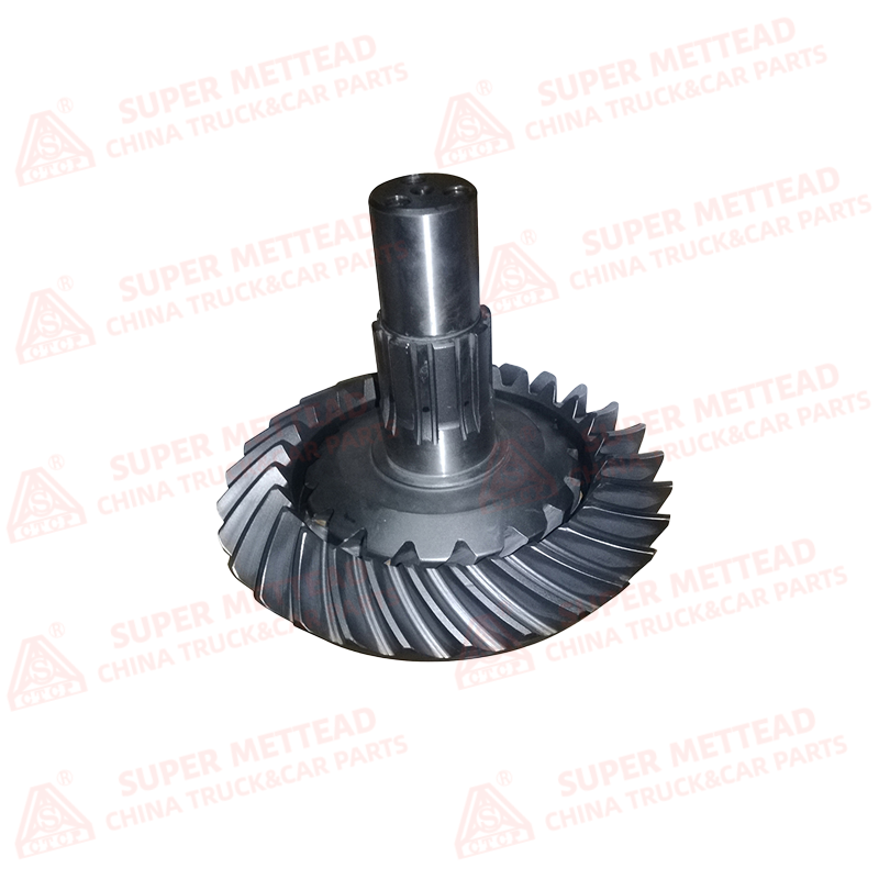 This spiral bevel gear (part of the 28-17 ratio set) is a precision-engineered drive pinion, manufactured from high-strength alloy steel through a process of precision forging, carburizing heat treatment, and multi-stage grinding. The spiral tooth profile is precision-cut to ensure smooth meshing with the mating crown gear, reducing noise and vibration while maximizing power transmission efficiency. The gear undergoes strict quality control, including dimensional inspection and surface hardness testing, to meet OE specifications for heavy-duty operation. Its robust construction and optimized tooth geometry enable it to withstand the high torque loads and dynamic stresses encountered in heavy-duty truck applications, making it ideal for long-haul and heavy-load transportation.