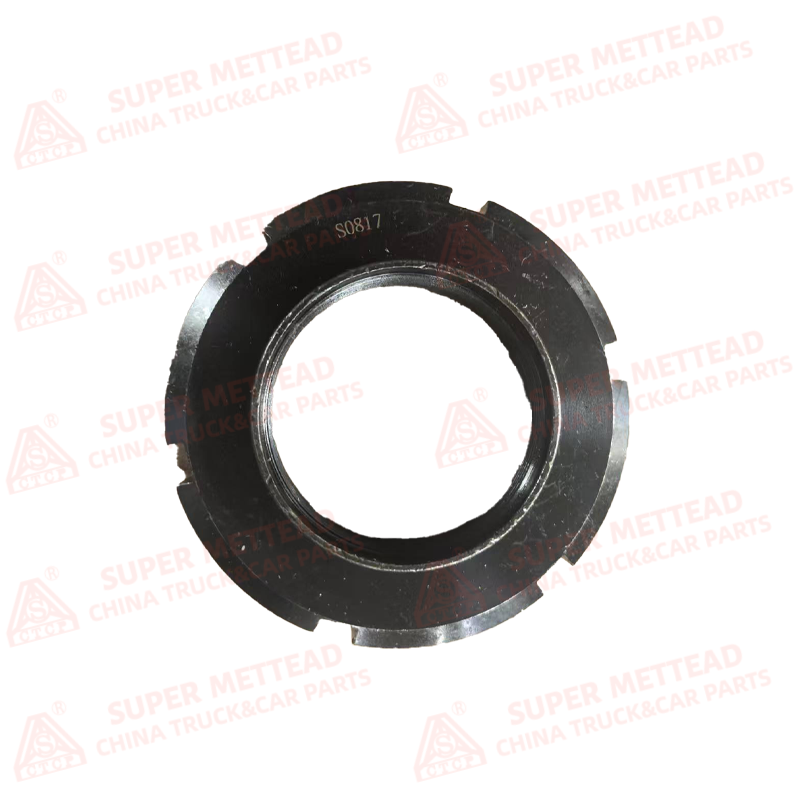 This high-performance slotted clamping nut is a precision fastener designed for heavy-duty truck applications. It delivers a controlled clamping force to maintain precise preload on components like wheel hub bearings, ensuring optimal performance, longevity, and resistance to vibration-induced loosening.