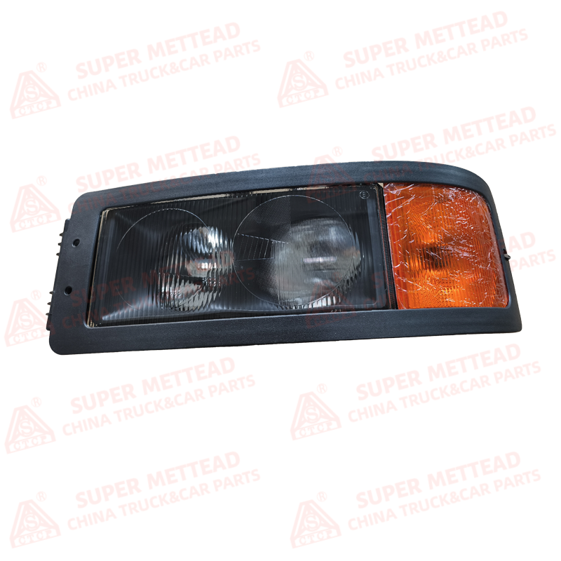 This Combined Headlamp Assembly 81.25101.6294 is an OEM front lighting component for heavy-duty trucks (e.g., MAN, Foton, or Shacman models). It features a robust black plastic housing with an integrated amber turn signal lens and a dual-lens headlight assembly, designed for durability in high-vibration, dusty environments. The assembly is engineered with a sealed design to protect against water and dust ingress, ensuring reliable performance in all weather conditions. Manufactured to exact OEM specifications, it guarantees a perfect fit and seamless integration with the vehicle’s electrical system.