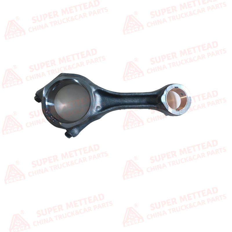 Product Introduction: A high-strength forged steel connecting rod, precision-machined with a hardened surface. It features a bronze bushing in the small end (for the piston pin) and a split big end (for the crankshaft journal).