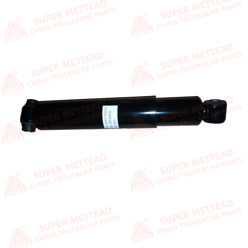This front shock absorber features a twin-tube design, with a seamless steel outer cylinder, precision-machined piston rod, multi-stage disc valve assembly, and heavy-duty mounting eyes at both ends fitted with high-durometer rubber bushings.