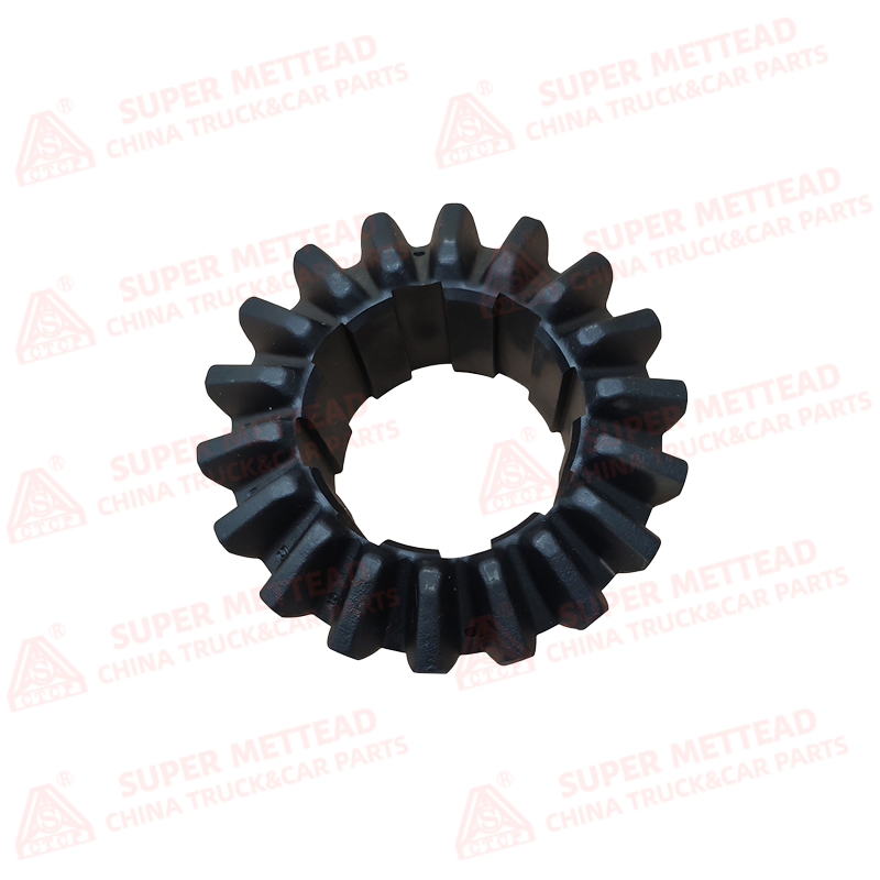 This differential pinion gear is a precision bevel gear manufactured from high-strength alloy steel through a process of precision forging, carburizing heat treatment, and precision grinding. It features a robust, symmetrical tooth profile designed for optimal meshing with the differential side gears, ensuring efficient torque transmission and smooth operation. The gear is engineered to withstand the high torque loads and heavy-duty operating conditions typical of heavy-duty trucks, with a black surface treatment providing enhanced wear resistance and corrosion protection. Its precision machining ensures tight tolerances, minimal backlash, and stable performance, even under prolonged heavy use.
