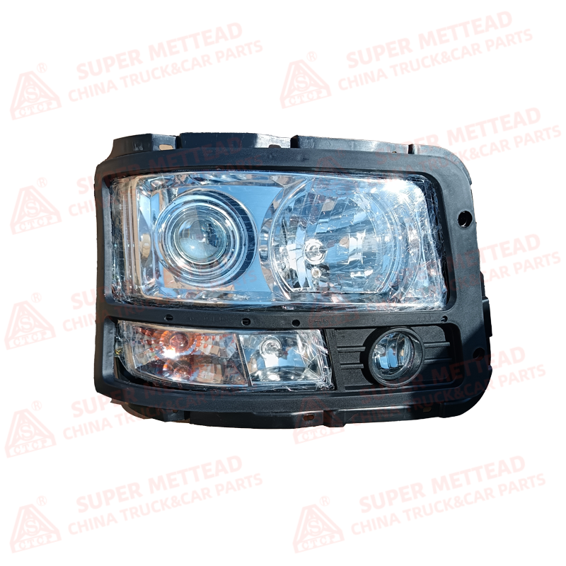 This Head Lamp DZ93189723020 is an OEM front lighting component for heavy-duty trucks (e.g., Shacman Delong series). It features a robust black plastic housing with an integrated multi-lens design, combining a main headlight, auxiliary lighting, a turn signal, and a fog lamp in a single assembly. The clear, impact-resistant polycarbonate lens is protected by a sealed structure, and the reinforced mounting brackets ensure stability in high-vibration environments. Manufactured to exact OEM specifications, it guarantees a perfect fit and seamless integration with the vehicle’s electrical system.