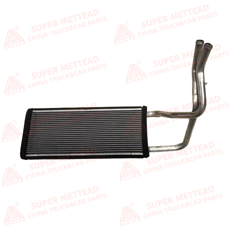 Structure: Constructed from high-efficiency aluminum tubes and fins, with integrated inlet/outlet water pipes and a corrosion-resistant coating. It features a compact, flat-tube design optimized for maximum heat transfer in the limited space of the truck’s HVAC housing, with reinforced mounting brackets for vibration resistance.