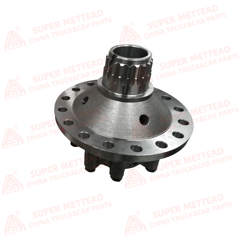 The Interwheel Differential Assembly 199014320165 is a core power distribution component of the heavy-duty truck drive system, integrally forged from high-strength alloy steel and precision-machined through multi-stage processes. The assembly integrates a differential case, side gears, pinion gears, cross shaft and built-in spline shaft structure, with the spline shaft end directly matching the half shaft connection to achieve integrated power transmission. Its internal gear pair adopts a high-precision bevel tooth design, and the tooth surface is treated with carburizing and quenching to ensure ultra-high hardness and wear resistance. The differential case features a one-piece casting structure with reinforced ribs, which effectively disperses the torque impact during heavy load operation. The precision-machined mounting flange and oil injection hole ensure accurate assembly positioning and reliable internal lubrication, making it adaptable to extreme working conditions such as long-distance heavy load transportation and complex road conditions.