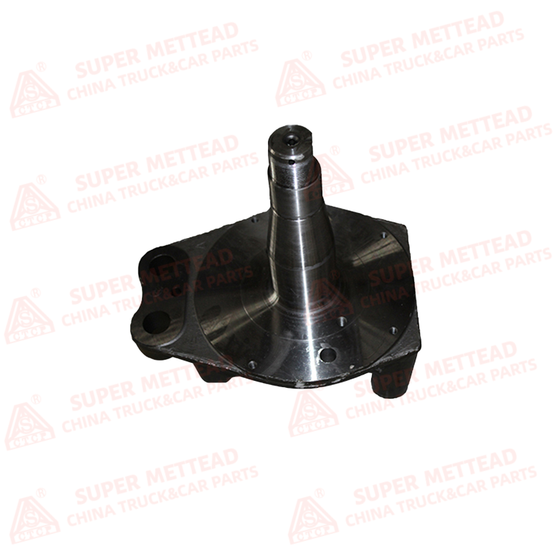 This left steering knuckle is a precision-cast and machined component, constructed from high-strength ductile iron to withstand the heavy loads, impacts, and stresses encountered during heavy-duty operation. It features a robust, integrated design with a central kingpin bore for the steering kingpin, a precision-machined flange for wheel hub mounting, and dedicated mounting points for brake calipers, steering arms, and other front-end components. The knuckle undergoes rigorous heat treatment and surface finishing processes to ensure exceptional strength, dimensional accuracy, and resistance to wear and fatigue. Its precision-machined bearing bores and mounting surfaces ensure perfect alignment of all associated components, contributing to stable and responsive steering performance.
