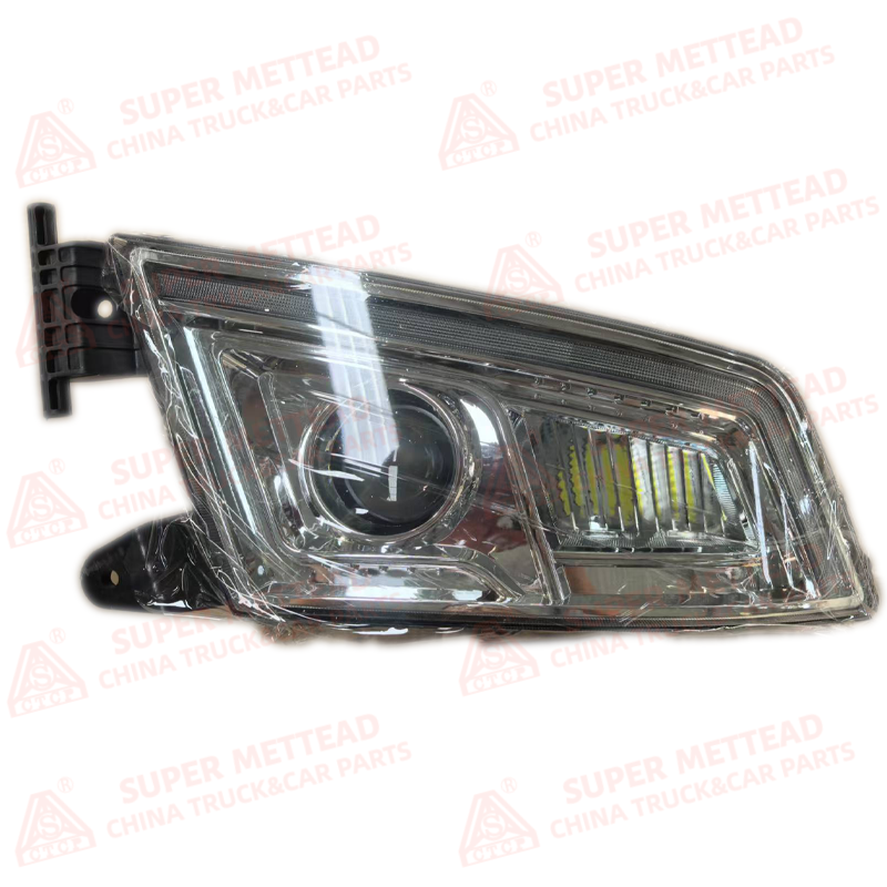 This LED Headlight Assembly 812W25101-6022 is an OEM right-side front lighting component exclusively for Sinotruk Howo T-series heavy-duty trucks. It features a high-strength ABS plastic housing, a scratch-resistant and UV-protected polycarbonate clear lens, an integrated high-brightness LED projector lens for low/high beams, and an independent LED daytime running light (DRL) module. Manufactured in strict accordance with Sinotruk’s lighting system specifications, it is engineered to withstand high vibration, stone impact, rain, and extreme temperature differences in commercial vehicle operations.