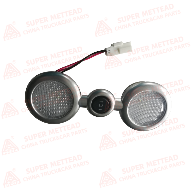This LED Interior Lamp WG9925720018 is an OEM interior lighting component for Sinotruk heavy-duty trucks (e.g., HOWO T7H, SITRAK C7H/G7S, HOWO TX7). It features a sleek silver-finished housing with dual circular LED light panels, a central two-position rocker switch, and a pre-wired white electrical connector. Designed for installation on the cab’s interior ceiling, it provides bright, uniform illumination for the driver and passenger area. Manufactured to strict quality standards, it ensures reliable performance in high-vibration, dusty, and extreme temperature operating environments.
