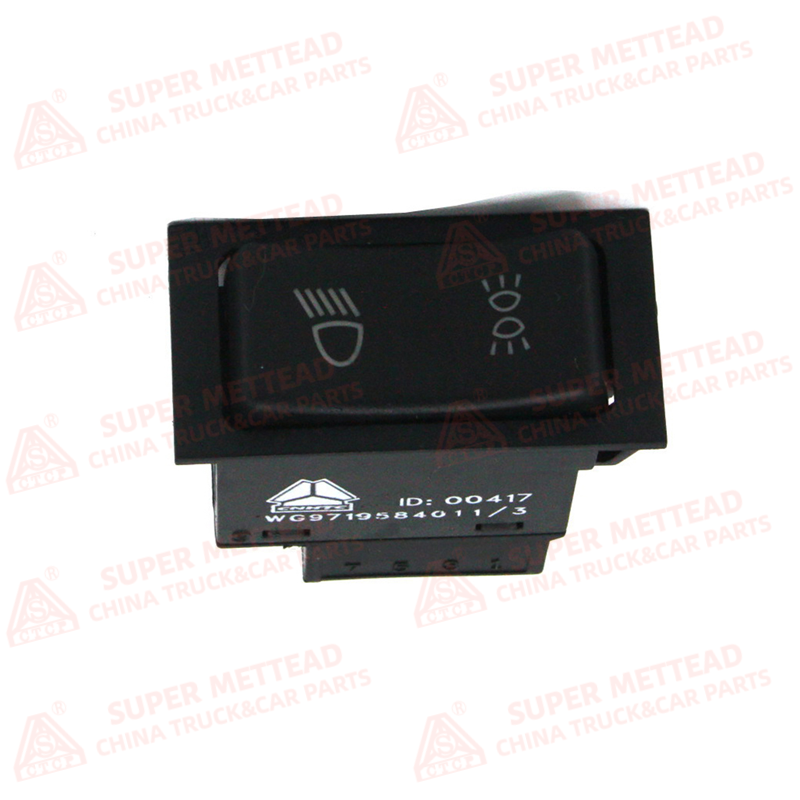 This Light Switch WG9719584011 is an OEM core lighting control component for Sinotruk heavy-duty trucks (e.g., HOWO 371, 336, T5G, A7). It features a rugged black ABS housing with a multi-position rocker design, precision internal copper contact terminals, and a plug-in PCB base with factory-etched part identification. Designed for flush installation in the truck’s instrument panel, it adheres to strict OEM standards for electrical stability and mechanical durability, ensuring reliable operation in high-vibration, temperature-fluctuating cab environments.