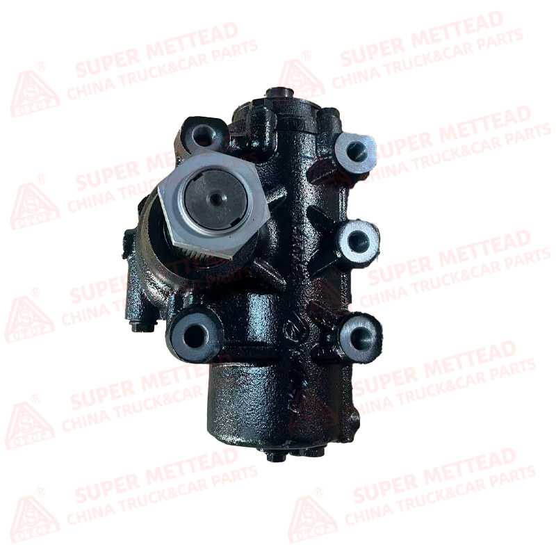 • Structure: A recirculating ball-type steering gear box with an integrated hydraulic assist mechanism, constructed from high-strength cast iron with a durable black anti-corrosion coating. It features a heavy-duty worm gear, recirculating ball nut, hydraulic piston, and precision-machined mounting points for secure chassis attachment.