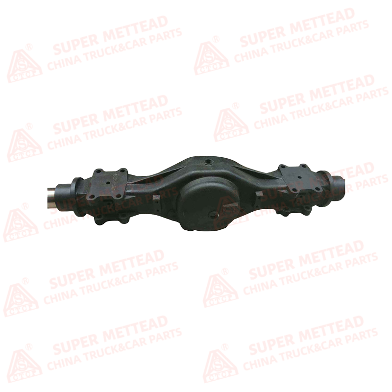This ST16 rear axle housing is a heavy-duty, precision-cast component, manufactured from high-strength ductile iron to withstand the extreme loads, vibrations, and stresses encountered during heavy-duty operation. It features a robust, one-piece design with precision-machined mounting surfaces, bearing bores, and bolt holes, ensuring accurate alignment of all internal components. The housing undergoes rigorous heat treatment and surface finishing processes, including a protective coating, to provide exceptional durability, resistance to impact and fatigue, and protection against corrosion. Its integrated design includes mounting points for the suspension, brake components, and wheel hubs, making it the central structural element of the ST16 rear axle.