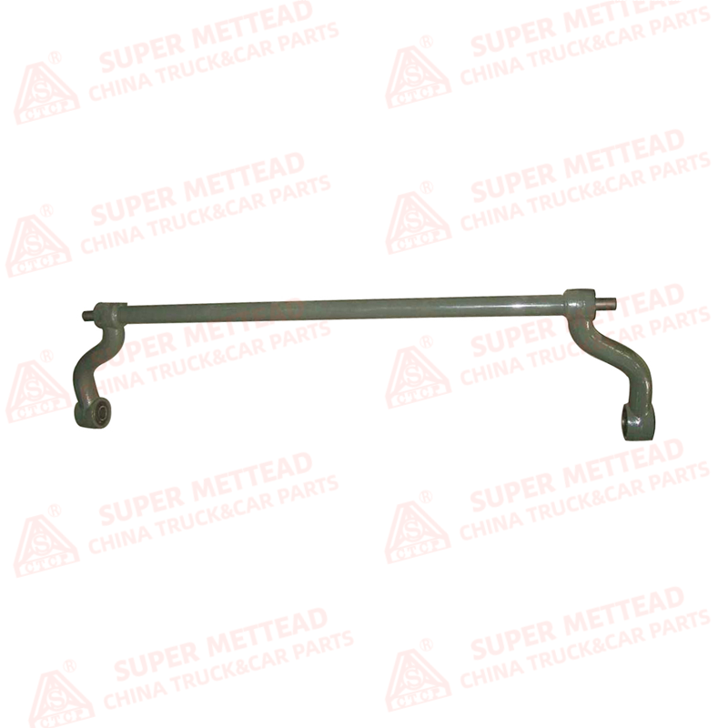This turning bracket is a precision-engineered steering linkage component designed for heavy-duty truck chassis systems. It features a long, rigid steel rod with a light gray anti-corrosion coating, integrated with two curved, forged steel arms at each end. Each arm terminates in a precision bearing housing, ensuring smooth articulation and reliable performance under heavy loads.
